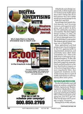 Designed cover and collaborated with co-workers in the creation of the 118-page 2019 edition of the WLJ North American Bull Guide. Most of the advertising arrives camera-ready from the advertiser.